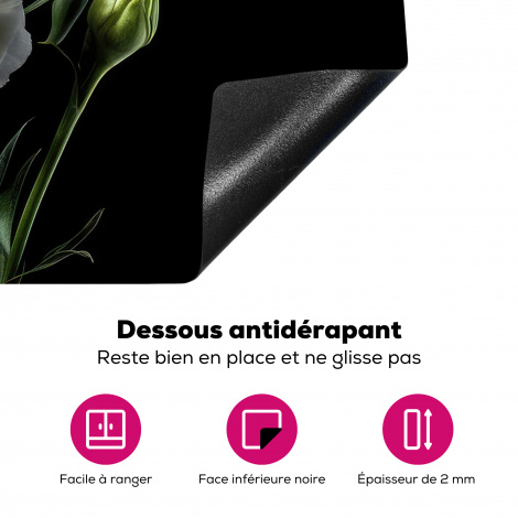 Protège-plaque à induction - Fleurs - Roses - Blanc - Botanique - Noir
